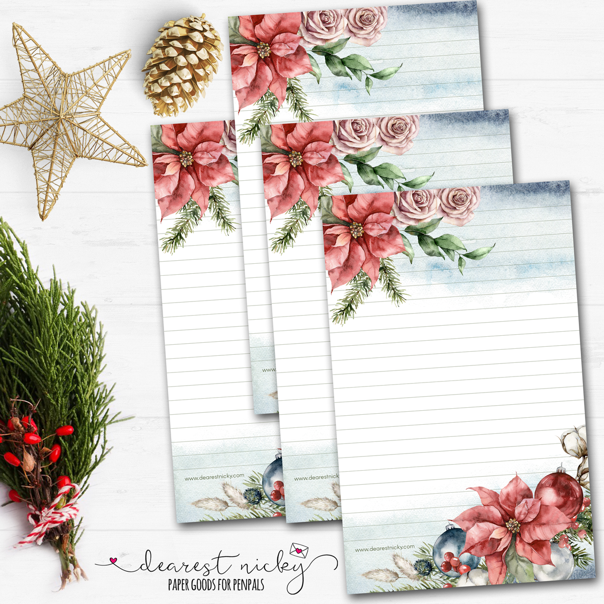 Poinsettias Letter Writing Paper